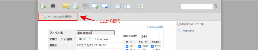 .htaccessにアクセスし、ファイル名を.htaccess1に変更します。