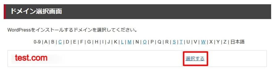 サブドメインを追加した独自ドメインの「選択する」を選んでください。