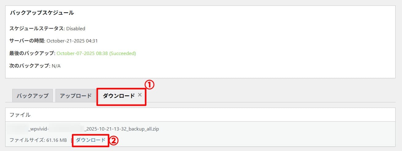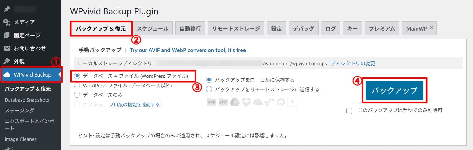 「WPvivid Backup」を使用したバックアップの取得方法を解説します。